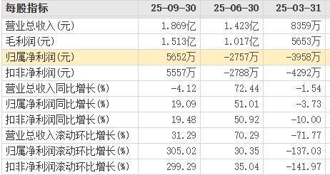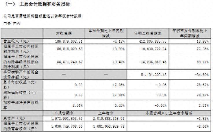 其中,第三季度实现营业收入1.87亿元,同比下降4.12%;归母净利润为5651.50万元,同比增长19.09%。